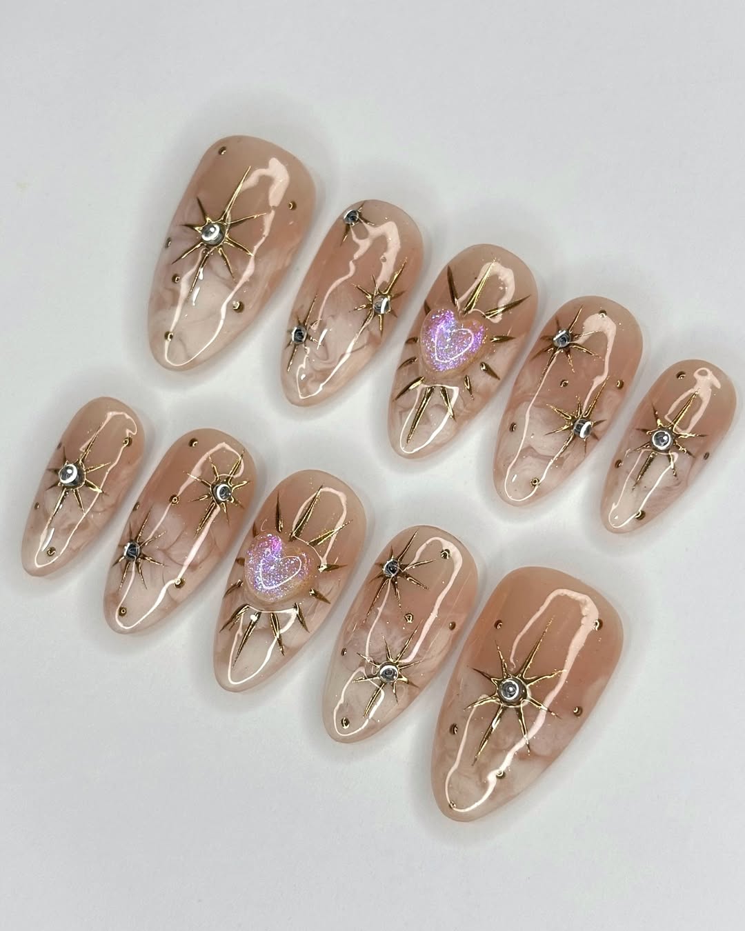 Nude Gold Star Press On Nails Heart Glow Elegant Art Set