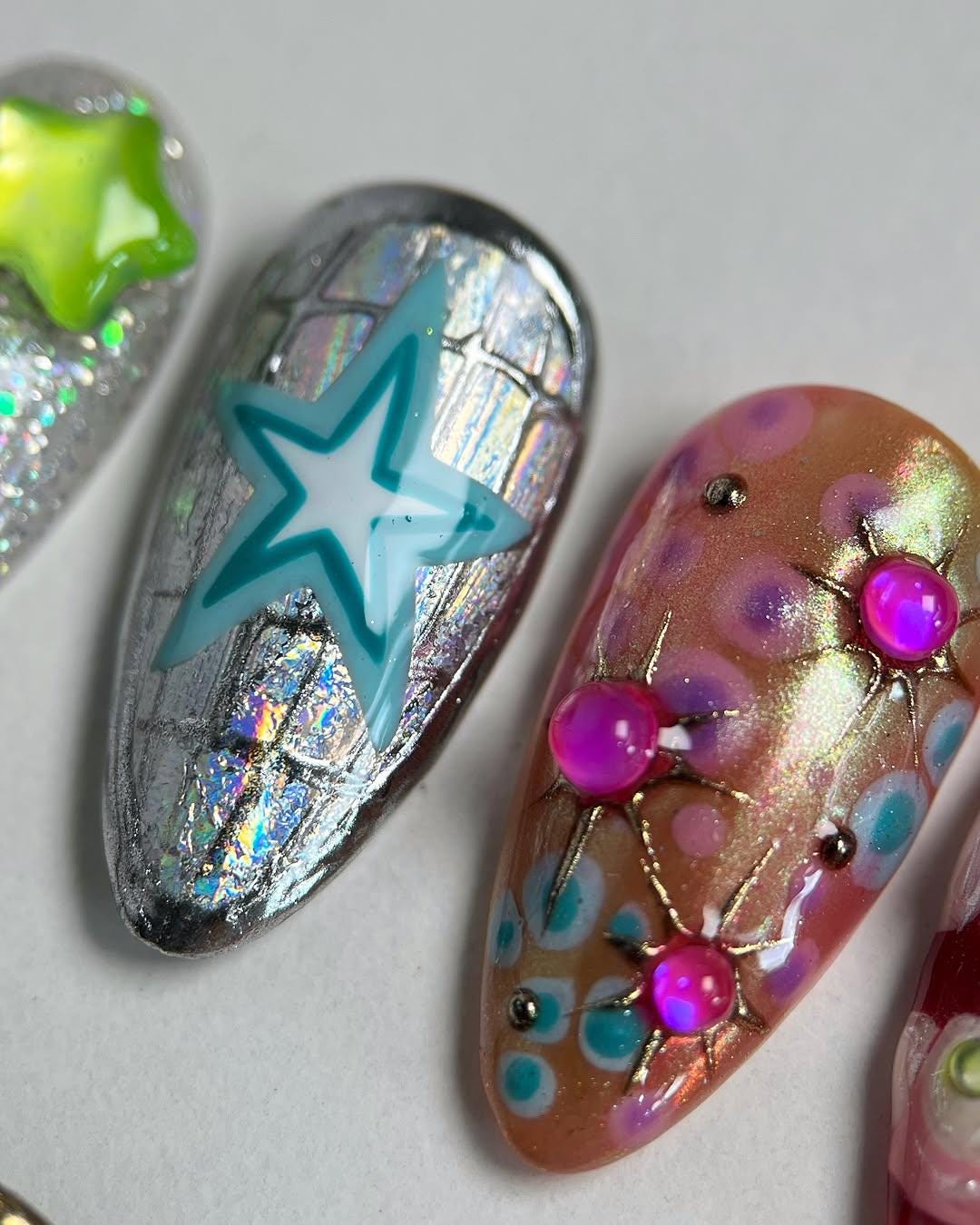 • Design Highlights: 3D sculpted stars, chrome hearts, pearls, glitter, and abstract art