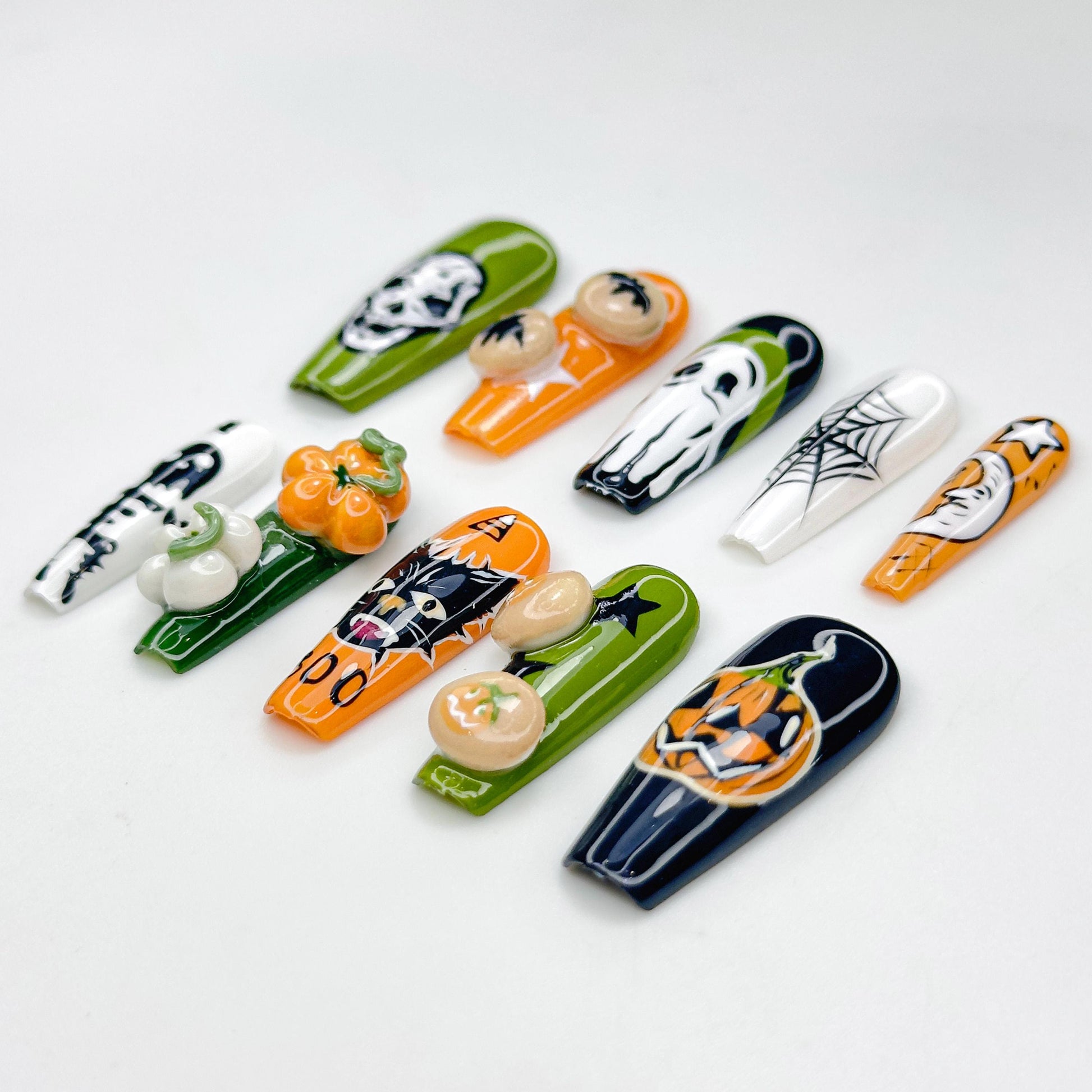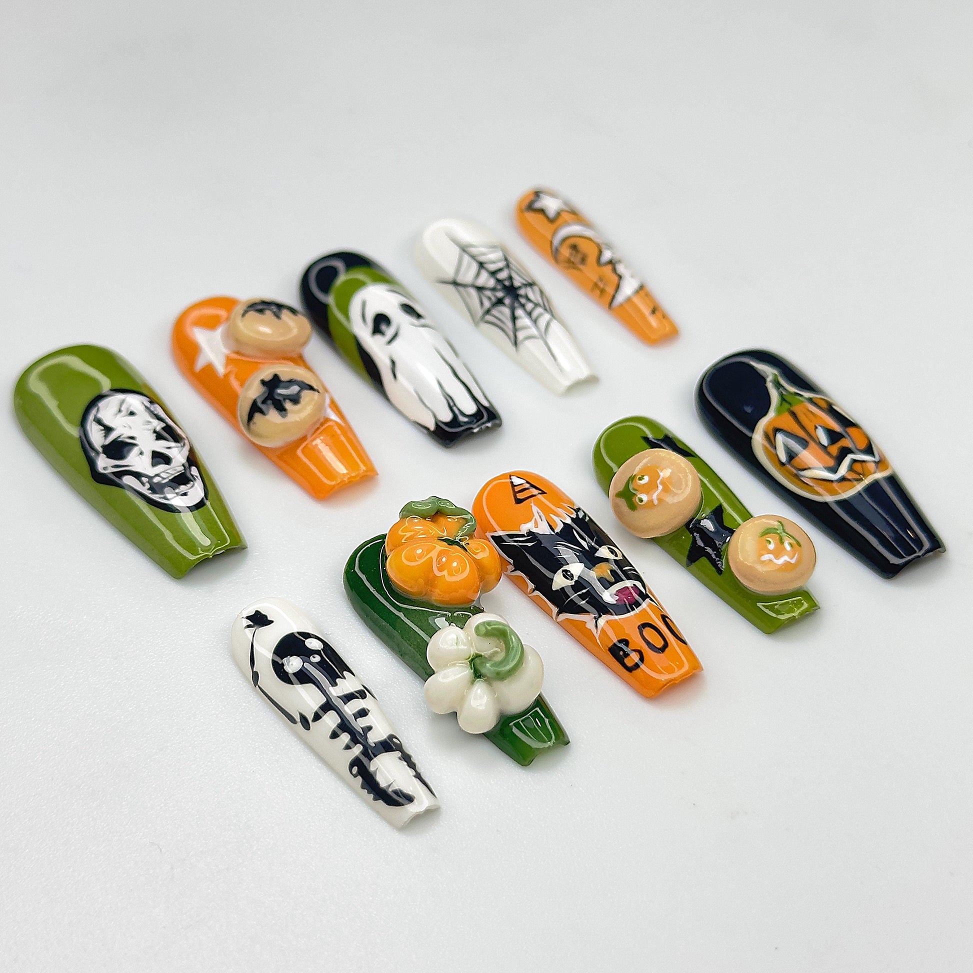 Spooky Halloween Press On Nails - Halloween Pumpkin Ghost Press On Nails