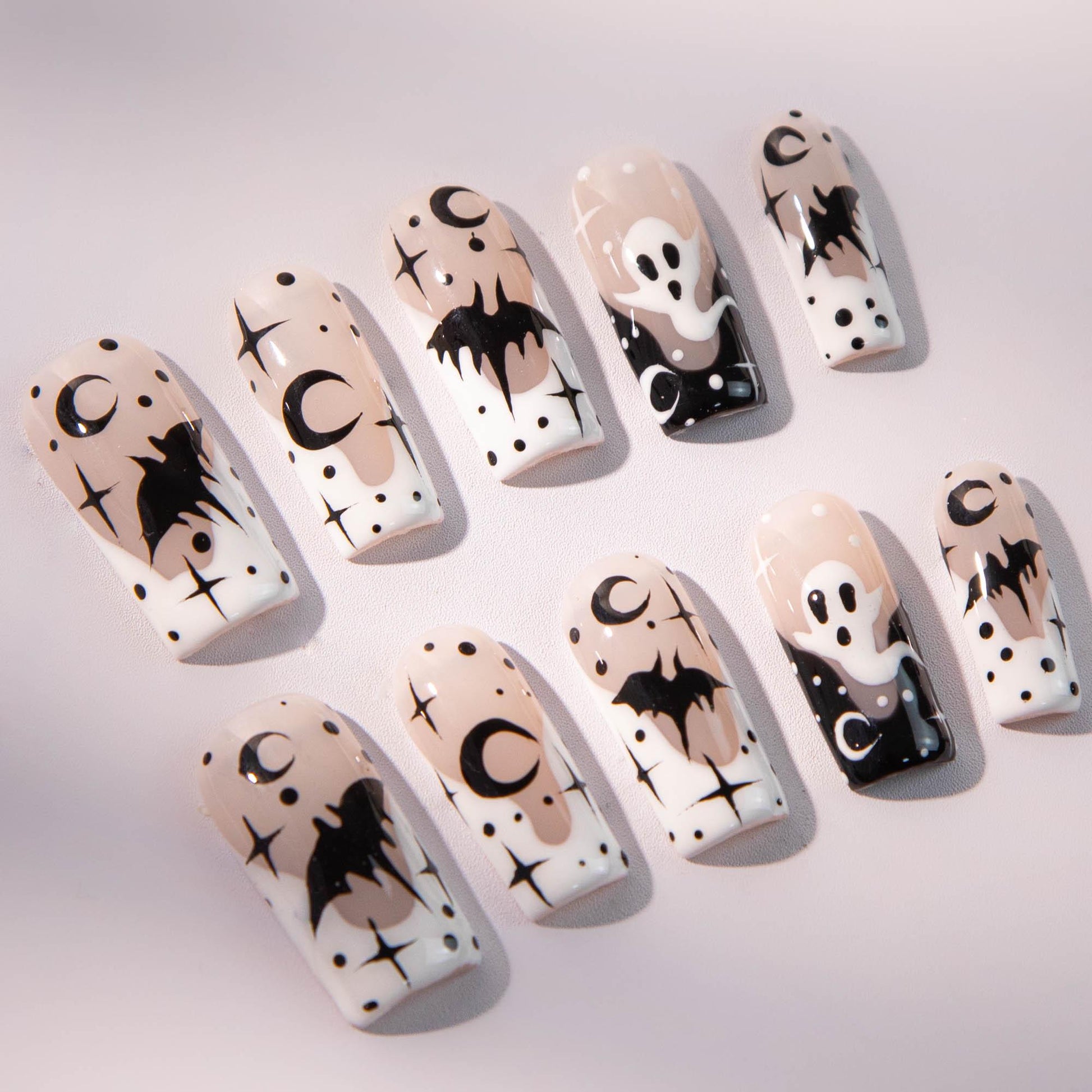 Halloween Ghost and Bat Press On Nails – Spooky Chic Design