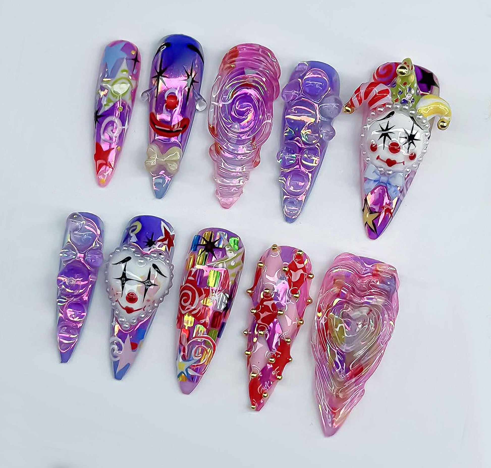 Designed in a squared long shape for maximum visual impact, these nails offer a strong, reusable ABS base with a smooth, high-shine surface that’s both durable and lightweight. Whether you're heading to a photoshoot, music festival, or just want to make a cutting-edge style statement, this nail set delivers instant attitude and originality.