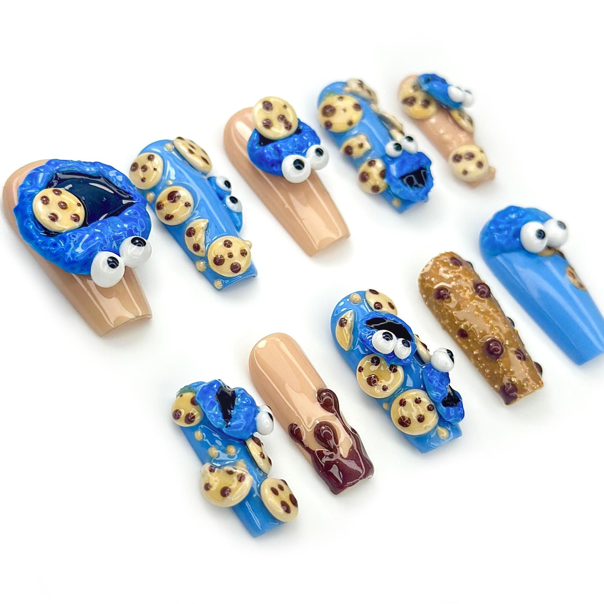 Cookie Monster Press On Nails - Cookie Monster 3D Press On Nails