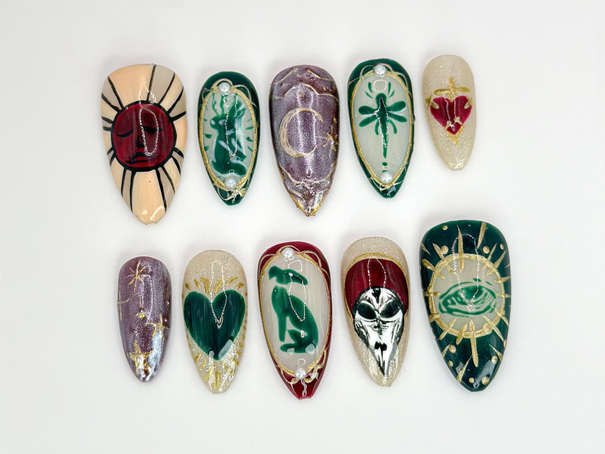 • 10 mystical nails with celestial and spiritual artwork